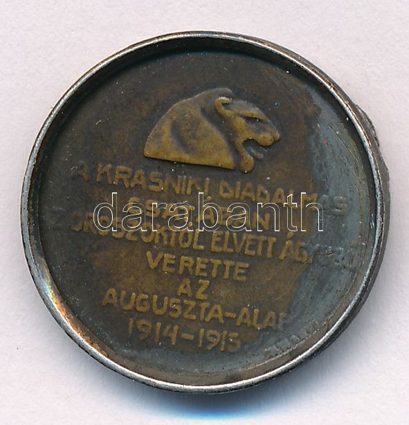 Osztrák-Magyar Monarchia 1915. ‘A Krasniki diadalmas csatában az oroszoktól elvett ágyúból verette az Auguszta-Alap’ Br emlékérem foglalatban. Szign.: Murányi Gyula (21,5mm) T:2-<a href="https://www.darabanth.com/hu/gyorsarveres/417/kategoriak~Numiz