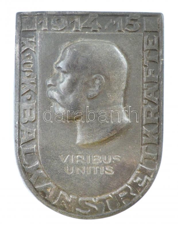 Osztrák-Magyar Monarchia 1915. ‘Balkáni Fegyveres Erők 1914/15 – VIRIBUS UNITIS’ Zn sapkajelvény, átlós tűvel, hátoldalon ‘GURSCHNER WIEN’ gyártói jelzés (37x27mm) T:1- Austro-Hungarian Monarchy 1915. ‘BALKANSTREITKRäFTE – VIRIBUS