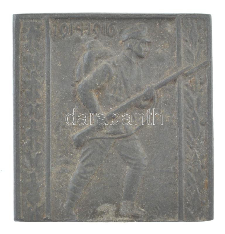 Osztrák-Magyar Monarchia 1916. ‘1914-1916 ‘ rohamozó honvédet ábrázoló Zn sapkajelvény (29x27mm) T:2 patina, anyaghiány Austro-Hungarian Monarchy 1916. ‘1914-1916’ depiction of a dashing patriot, Zn cap badge (29x27mm) C:XF patina, missing parts<a h