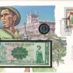 Paraguay ‘Chaco katona’ érmés és bankjegyes, pecsételt boríték benne 1984. 1G rozsdamentesacél érmével és 1952. 1G bankjeggyel a PHILSWISS kiadásában, német leírással T:1,I
