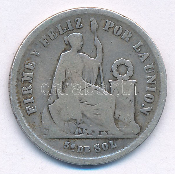 Peru 1866YB 1/5S Ag T:3 Peru 1866YB 1/5 Sol Ag C:F Krause KM#191<a href="https://www.darabanth.com/hu/gyorsarveres/434/kategoriak~Numizmatika/Kulfoldi-fem-es-ezustpenzek~1500015/Peru-1866YB-15S-Ag-T3–Peru-1866YB-15-Sol-Ag-CF–Krause-KM23191~II280