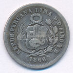 Peru 1866YB 1/5S Ag T:3 Peru 1866YB 1/5 Sol Ag C:F Krause KM#191