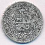 Peru 1884RD 1S Ag T:2- kis ph. Peru 1884RD 1 Sol Ag C:VF small edge error Krause KM#196