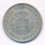 Portugál India 1881. 1/2R Ag ‘I. Lajos’ T:2- ph. Portugal India 1881. 1/2 Rupee Ag ‘Ludovicus I’ C:VF edge error Krause KM#23