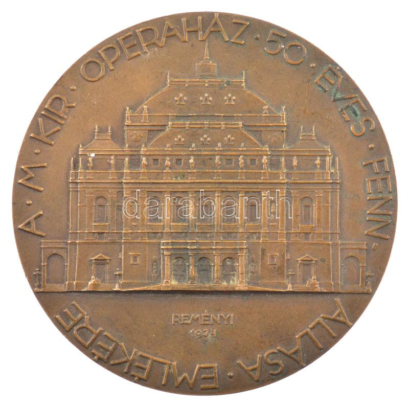 Reményi József (1887-1977) 1934. ‘A M. Kir. Operaház 50 éves fennállása emlékére / 1884-1934’ kétoldalas bronz emlékérem (70mm) T:1-,2 patina HPII 2249.<a href="https://www.darabanth.com/hu/gyorsarveres/434/kategoriak~Numizmatika/Magyar-emlekveretek