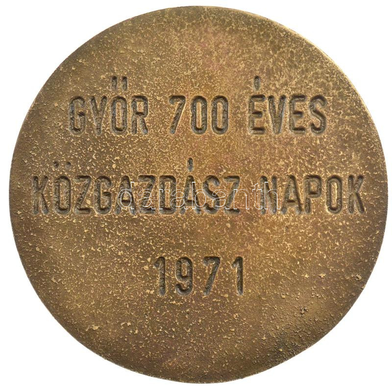 Renner Kálmán (1927-1994) 1971. ‘Győr Város Emlékérem’ öntött bronz emlékérem, hátoldalon ‘GYŐR 700 ÉVES – KÖZGAZDÁSZ NAPOK 1971’ felirattal (78mm) T:2 patina<a href="https://www.darabanth.com/hu/gyorsarveres/432/kategoriak~Numizmatika/Magyar-emlekv