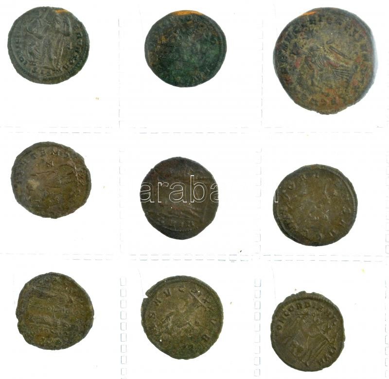 Római Birodalom 9xklf Br érme a III-IV. századból, közte Maximianus, Licinius, Aurelianus, Tacitus, Diocletianus T:2-3 Roman Empire 4xdiff Br coins from the 3rd-4th Century, within Maximian, Licinius, Aurelian, Tacitus, Diocletian C:XF-F<a href="htt