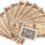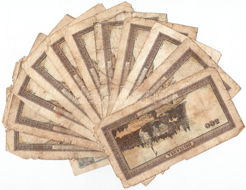 Románia 1915 1L + 1940-1941. 500L (12db, közte ‘E/6 0000584’ alacsony sorszámmal) T:III- fo. Romania 1915. 1 Leu + 1940-1941. 500 Lei (12pcs, within ‘E/6 0000584’ low serial number) C:VG spotted Krause P#17, P#51<a href="https://www.darabanth.com/hu