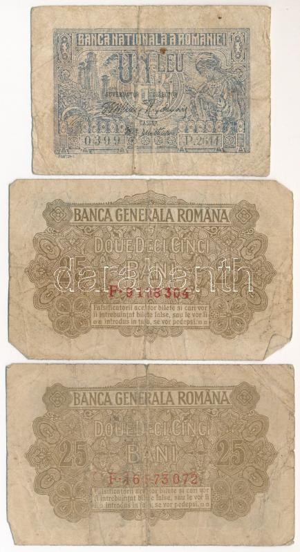 Románia 1915. 1L + Német megszállás 1917. 25b (2x) T:III-III- Romania 1915. 1L + German occupation 1917. 25 Bani C:F,VG<a href="https://www.darabanth.com/hu/gyorsarveres/413/kategoriak~Numizmatika/Kulfoldi-bankjegyek~1500012/Romania-1915-1L-plus-Nem