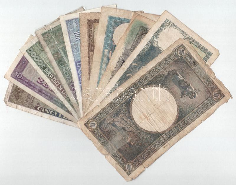 Románia 1944-1966. 5L-100.000L (10db) T:F-G Romania 1944-1966. 5 Lei – 100.000 Lei (10pcs) C:F-G<a href="https://www.darabanth.com/hu/gyorsarveres/439/kategoriak~Numizmatika/Kulfoldi-bankjegyek~500013/Romania-1944-1966-5L-100000L-10db-TF-G-Romania-1