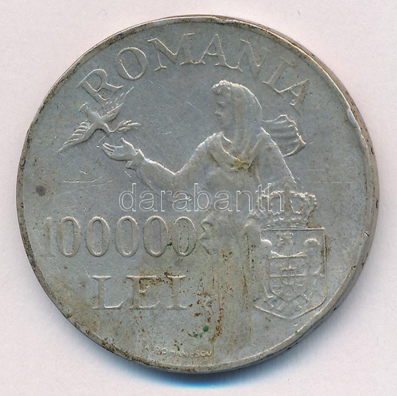 Románia 1946. 100.000L Ag ‘I. Mihály’ T:2- ph, patina Romania 1946. 100.000 Lei Ag ‘Mihai I’ C:VF edge error, patina Krause KM#71<a href="https://www.darabanth.com/hu/gyorsarveres/433/kategoriak~Numizmatika/Kulfoldi-fem-es-ezustpenzek~2000007/Roman