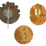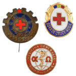 Románia ~1980-1990. ‘A Vöröskereszt ápolója’ zománcozott tombak jelvény + ‘G.P.A.S. – R.P.R. (Egészségügyi Védelem – Román Népköztársaság)’ zománcozott Cu jelvény + ‘Medicina Generalis’ zománcozott tombak jelvény T:1,2- jelentős zománchiány Romania ~1980-