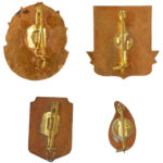 Románia, ~1980. 4 darabos egészségügyi témájú zománcos és műgyantás fém jelvény tétel, közte ‘Egészségügyi előadó’,’Tiszteletbeli véradó’ T:1-sérült műgyanta Romania ~1980. 4 pieces healthcare themed synthetic resin metal badge lot, among ‘Instructor Sani