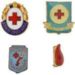 Románia, ~1980. 4 darabos egészségügyi témájú zománcos és műgyantás fém jelvény tétel, közte ‘Egészségügyi előadó’,’Tiszteletbeli véradó’ T:1-sérült műgyanta Romania ~1980. 4 pieces healthcare themed synthetic resin metal badge lot, among ‘Instructor Sani