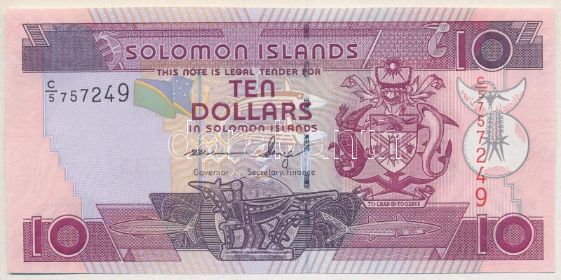 Salamon-szigetek 1986. 10D T:I Solomon Islands 1986. 10 Dollars C:UNC Krause KM#15a<a href="https://www.darabanth.com/hu/gyorsarveres/432/kategoriak~Numizmatika/Kulfoldi-bankjegyek~1500014/Salamon-szigetek-1986-10D-TI-Solomon-Islands-1986-10-Dollars