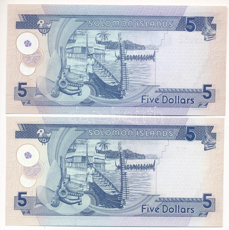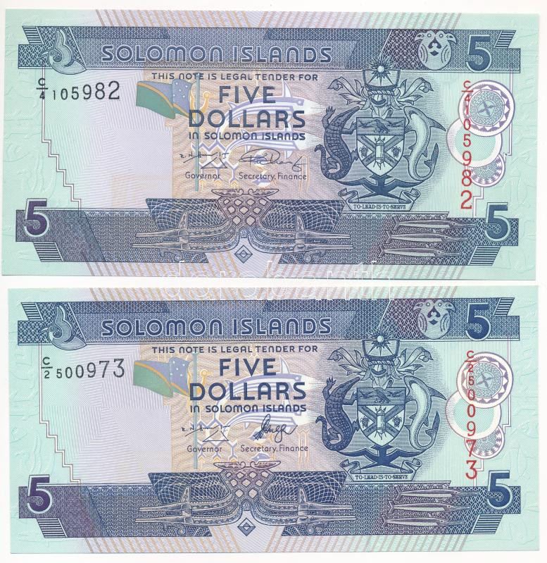 Salamon-szigetek 1986-2006 5$ (x2) T:I Solomon Islands 1986-2006 5 Dollars (2x) C:UNC Krause KM#14, KM#26<a href="https://www.darabanth.com/hu/gyorsarveres/433/kategoriak~Numizmatika/Kulfoldi-bankjegyek~2000008/Salamon-szigetek-1986-2006-5USD-x2-TI-