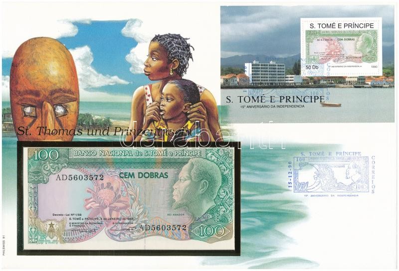 Sao Tomé és Príncipe 1989. 100D borítékban, alkalmi bélyeggel és bélyegzéssel T:I Sao Tomé and Príncipe 1989. 100 Dobras in envelope with stamps and cancellations C:UNC<a href="https://www.darabanth.com/hu/gyorsarveres/417/kategoriak~Numizmatika/Erm