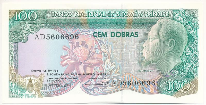 Sao Tomé & Principe 1989. 100D ‘AD5606696’ T:I- Sao Tomé & Principe 1989. 100 Dobras ‘AD5606696’ C:AU Krause P#60<a href="https://www.darabanth.com/hu/gyorsarveres/432/kategoriak~Numizmatika/Kulfoldi-bankjegyek~1500014/Sao-Tome-Principe-1989-100D-AD