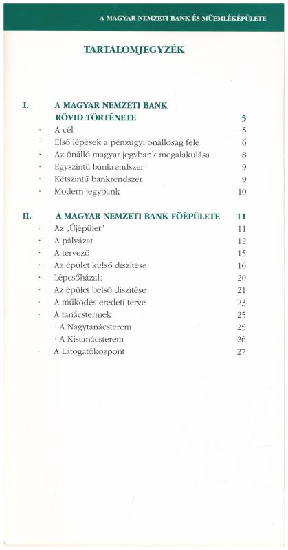Séta a pénz palotájában. A Magyar Nemzeti Bank és műemlék épülete. Budapest, Magyar Nemzeti Bank, 2009. tájékoztató füzet