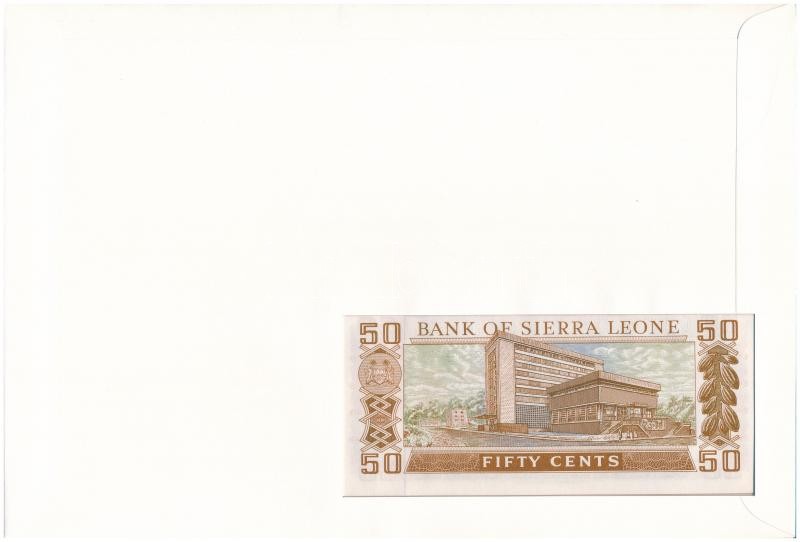 Sierra Leone 1984. 50c felbélyegzett borítékban, bélyegzéssel T:I Sierra Leone 1984. 50 Cents in envelope with stamp and cancellation C:UNC<a href="https://www.darabanth.com/hu/gyorsarveres/417/kategoriak~Numizmatika/Ermes-es-bankjegyes-boritekok~20