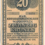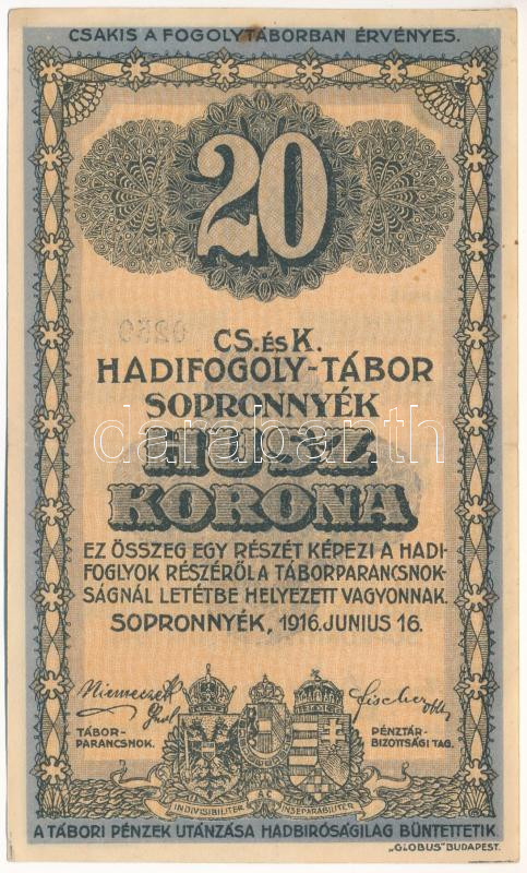 Sopronnyék / hadifogolytábor 1916. 20K arab sorozat- és sorszámmal T:F fo., egyébként szép papír<a href="https://www.darabanth.com/hu/gyorsarveres/438/kategoriak~Numizmatika/Papir-es-fem-szuksegpenzek~1500006/Sopronnyek-hadifogolytabor-1916-20K-arab