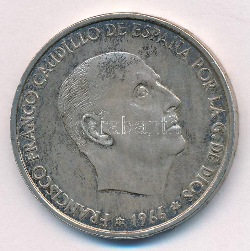 Spanyolország 1966. (68) 100P Ag ‘Franco’ T:1- patina Spain 1966. (68) 100 Pesetas Ag ‘Franco’ C:AU patina Krause KM#797<a href="https://www.darabanth.com/hu/gyorsarveres/432/kategoriak~Numizmatika/Kulfoldi-fem-es-ezustpenzek~1500015/Spanyolorszag-1