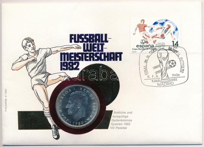 Spanyolország 1980. 100P Cu-Ni érmés borítékban, bélyeggel és bélyegzéssel T:1 Spain 1980. 100 Pesetas Cu-Ni in coin envelope with stamp and cancellation C:UNC Krause KM#820<a href="https://www.darabanth.com/hu/gyorsarveres/412/kategoriak~Numizmati