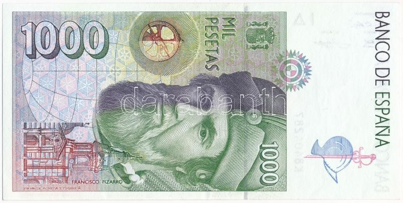 Spanyolország 1992. 1000P ‘K8404287’ T:I- Spain 1992. 1000 Pesetas ‘K8404287’ C:AU Krause P#163<a href="https://www.darabanth.com/hu/gyorsarveres/411/kategoriak~Numizmatika/Kulfoldi-emlekveretek-plakettek~2000021/Spanyolorszag-1992-1000P-K8404287-TI
