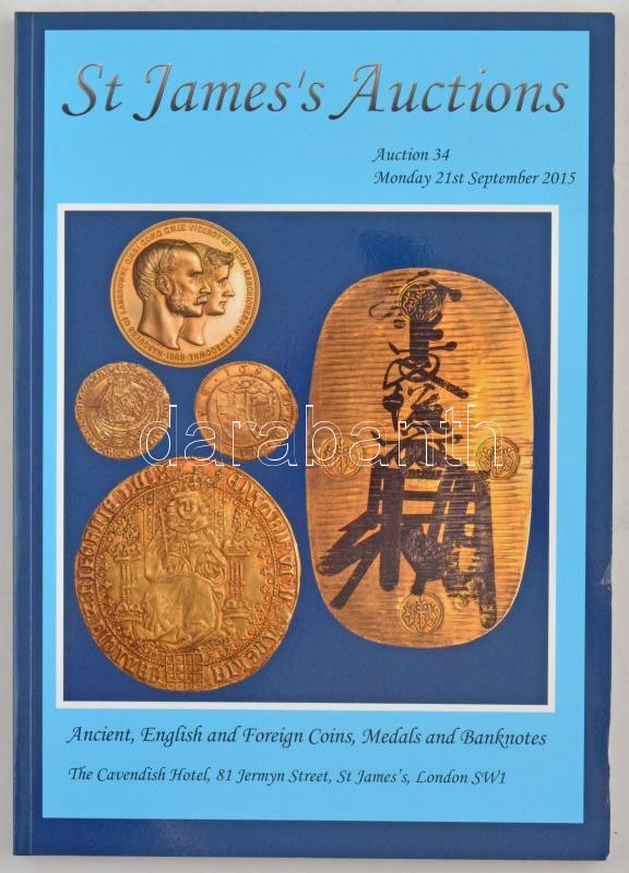 St. James’s Auctions ‘Auction 34 – 21st September 2015 – Ancient, English and Foreign Coins, Medals and Banknotes’ aukciós katalógus, benne egy kitöltetlen licitlappal. Pardy and Son, United Kingdom, 2015. Újszerű állapotban