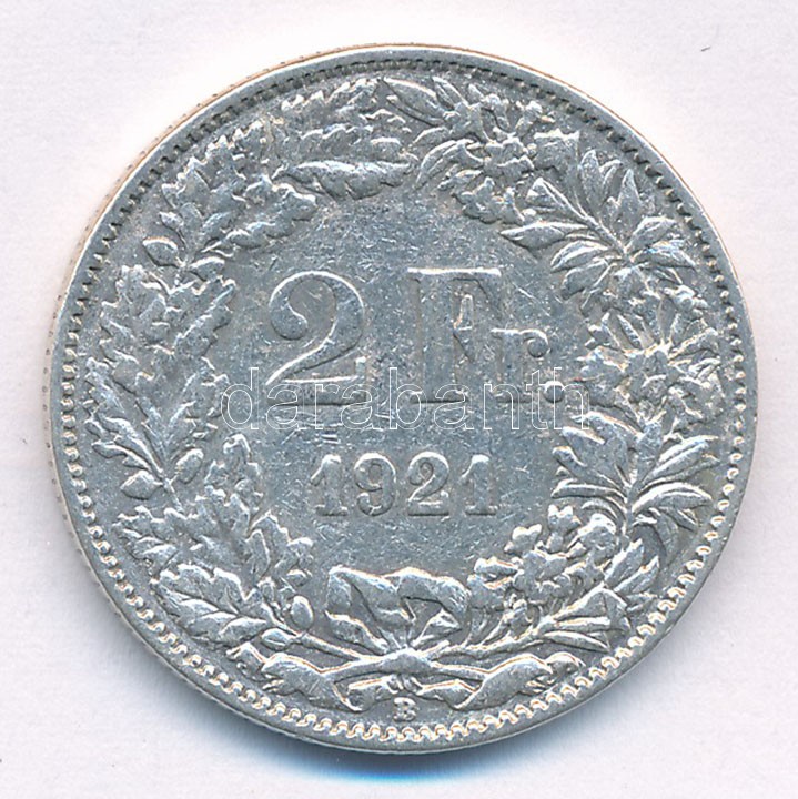 Svájc 1921. 2Fr Ag T:2- Switzerland 1921. 2 Francs Ag C:VF Krause KM#21<a href="https://www.darabanth.com/hu/gyorsarveres/432/kategoriak~Numizmatika/Kulfoldi-fem-es-ezustpenzek~1500015/Svajc-1921-2Fr-Ag-T2–Switzerland-1921-2-Francs-Ag-CVF–Krause
