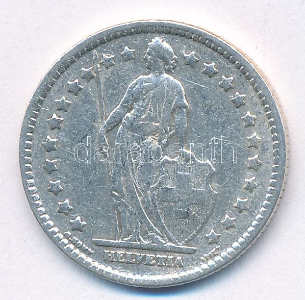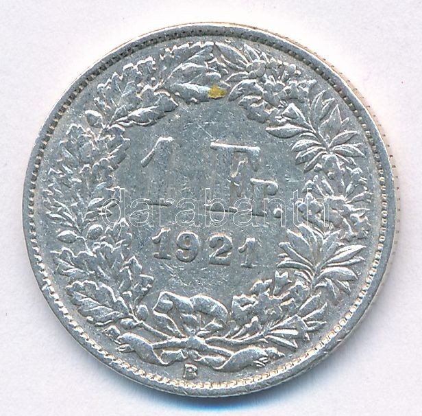 Svájc 1921B 1Fr Ag T:2-,3 Switzerland 1921B 1 Franc Ag C:VF,F Krause KM#24<a href="https://www.darabanth.com/hu/gyorsarveres/414/kategoriak~Numizmatika/Kulfoldi-fem-es-ezustpenzek~2000013/Svajc-1921B-1Fr-Ag-T2-3–Switzerland-1921B-1-Franc-Ag-CVF-F