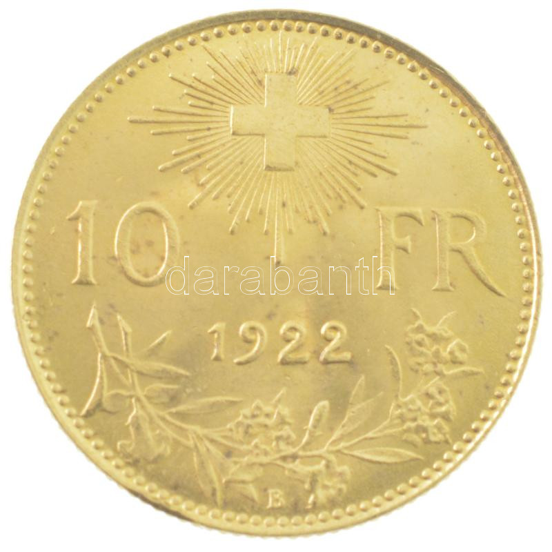 Svájc 1922B 10Fr Au ‘Helvetia’ (3,22g/0.900) T:2 Switzerland 1922B 10 Francs Au ‘Helvetia’ (3,2g/0.900) C:XF Krause KM#36<a href="https://www.darabanth.com/hu/gyorsarveres/432/kategoriak~Numizmatika/Magyar-es-kulfoldi-aranypenzek-es-emlekveretek~15