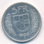Svájc 1935B 5Fr Ag T:2- Switzerland 1935B 5 Francs Ag C:VF Krause KM#402<a href="https://www.darabanth.com/hu/gyorsarveres/413/kategoriak~Numizmatika/Kulfoldi-fem-es-ezustpenzek~1500013/Svajc-1935B-5Fr-Ag-T2–Switzerland-1935B-5-Francs-Ag-CVF-Krause