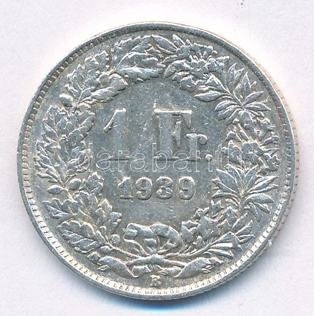 Svájc 1939B 1Fr Ag T:2,2- ph. Switzerland 1939B 1 Franc Ag C:XF,VF edge error Krause KM#24<a href="https://www.darabanth.com/hu/gyorsarveres/414/kategoriak~Numizmatika/Kulfoldi-fem-es-ezustpenzek~2000013/Svajc-1939B-1Fr-Ag-T2-2-ph-Switzerland-1939B-