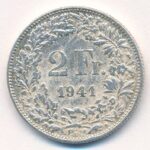 Svájc 1941B 2Fr Ag T:2- patina Switzerland 1941B 2 Francs Ag C:VF patina Krause KM#21<a href="https://www.darabanth.com/hu/gyorsarveres/412/kategoriak~Numizmatika/Kulfoldi-fem-es-ezustpenzek~1500014/Svajc-1941B-2Fr-Ag-T2-patina-Switzerland-1941B-2-F