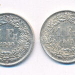 Svájc 1943-1944. 1Fr Ag (2xklf) T:2- Switzerland 1943-1944. 1 Franc Ag (2xdiff) C:VF Krause KM#24<a href="https://www.darabanth.com/hu/gyorsarveres/435/kategoriak~Numizmatika/Kulfoldi-fem-es-ezustpenzek~1500031/Svajc-1943-1944-1Fr-Ag-2xklf-T2-Switze