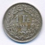 Svájc 1943B 1Fr Ag T:2- patina, ph. Switzerland 1943B 1 Franc Ag C:VF patina, edge error Krause KM#24<a href="https://www.darabanth.com/hu/gyorsarveres/420/kategoriak~Numizmatika/Kulfoldi-fem-es-ezustpenzek~2000016/Svajc-1943B-1Fr-Ag-T2-patina-ph-Sw