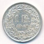 Svájc 1947B 1Fr Ag T:2 Switzerland 1947B 1 Franc Ag C:XF Krause KM#24<a href="https://www.darabanth.com/hu/gyorsarveres/412/kategoriak~Numizmatika/Kulfoldi-fem-es-ezustpenzek~1500014/Svajc-1947B-1Fr-Ag-T2-Switzerland-1947B-1-Franc-Ag-CXF-Krause-KM23