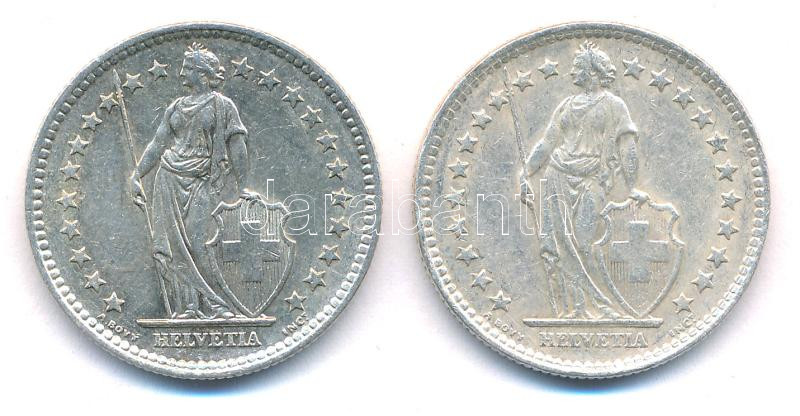 Svájc 1963-1964. 2Fr Ag (2xklf) T:1-,2 Switzerland 1963-1964. 2 Francs Ag (2xdiff) C:AU,XF Krause KM#21<a href="https://www.darabanth.com/hu/gyorsarveres/438/kategoriak~Numizmatika/Kulfoldi-fem-es-ezustpenzek~1500014/Svajc-1963-1964-2Fr-Ag-2xklf-T1-