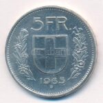 Svájc 1965B 5Fr Ag T:2 Switzerland 1965B 5 Francs Ag C:XF Krause KM#40<a href="https://www.darabanth.com/hu/gyorsarveres/410/kategoriak~Numizmatika/Kulfoldi-fem-es-ezustpenzek~2000015/Svajc-1965B-5Fr-Ag-T2-Switzerland-1965B-5-Francs-Ag-CXF-Krause-KM