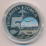 Svájc 1998. ’50 éves a zürichi reptér’ fém multicolor emlékérem T:1 (eredetileg PP) fo. Switzerland 1998. ’50th anniversary of the Airport in Zürich’ metal multicolor medallion C:UNC (originally PP) spotted