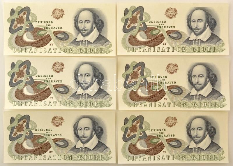 Svájc ~2000. Egyoldalas bankjegy tervezet névérték nélkül, „Shakespeare” előlapi tervezettel, a De La Rue bankjegynyomda kiadásában (6x) T:UNC,AU / Switzerland ~2000. One-sided test banknote without value, with „Shakespeare” as an obverse draft, made by t