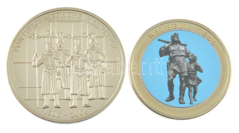 Svájc 2006 ‘Svájc története – Rütli eskü / Svájci gárda’ Cu-Ni emlékérem kapszulában (40mm) + Svájc története – Rütli eskü / Wilhelm Tell’ multicolor rátétes Cu-Ni emlékérem kapszulában (35mm) T:PP Switzerland 2006. ‘Historia Helvetica – Rütlischwur / Pon