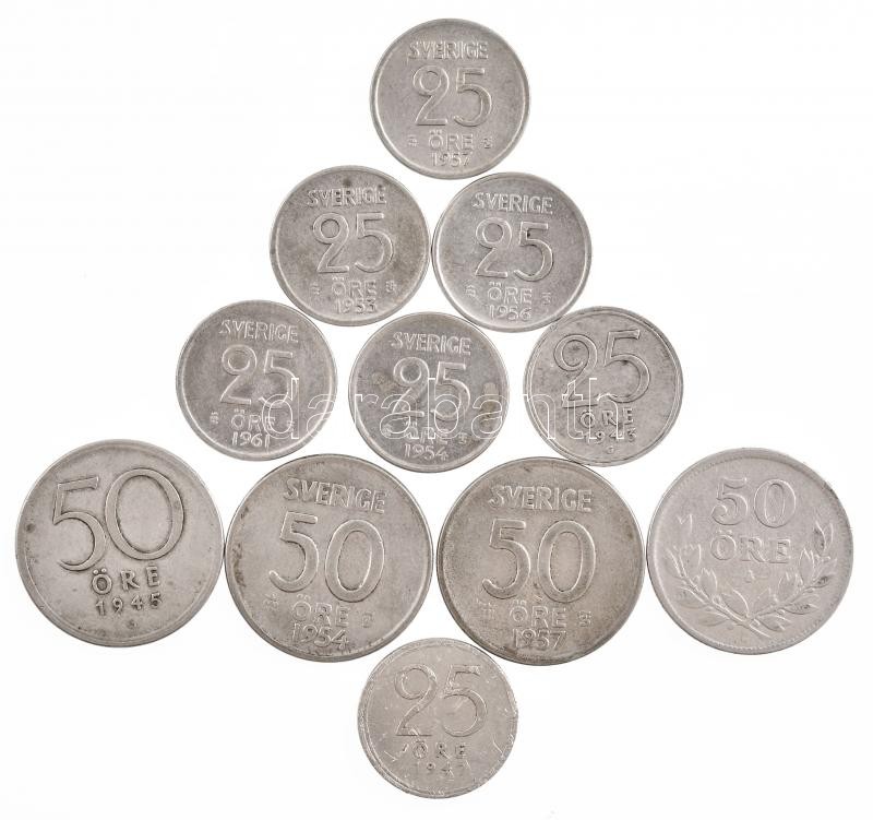 Svédország 1943-1961. 25Ö Ag (7xklf) + 1928-1957. 50Ö Ag (4xklf) T:2- patina, ph, karc Sweden 1943-1961. 25 Öre Ag (7xdiff) + 1928-1957. 50 Öre Ag (4xdiff) C:VF patina, edge error, scratch