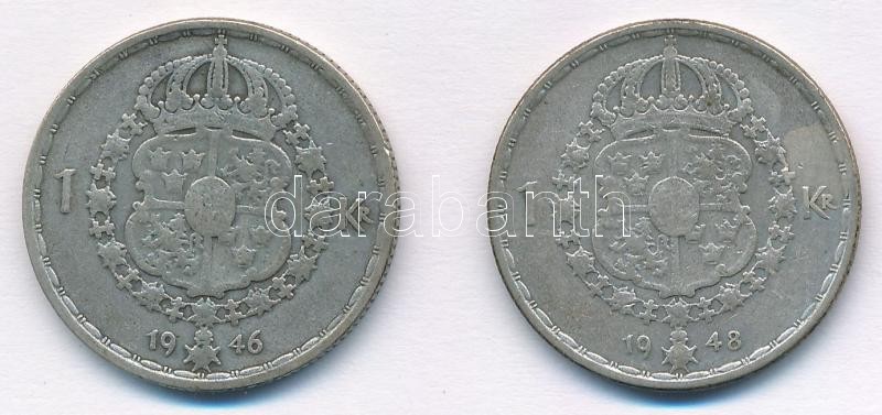 Svédország 1946TS-1948TS 1K Ag ‘V. Gusztáv’ (2xklf) T:2,2- Sweden 1946TS-1948TS 1 Krona Ag ‘Gustaf V’ (2xdiff) C:XF,VF Krause KM#814<a href="https://www.darabanth.com/hu/gyorsarveres/410/kategoriak~Numizmatika/Kulfoldi-fem-es-ezustpenzek~2000015/Sv