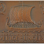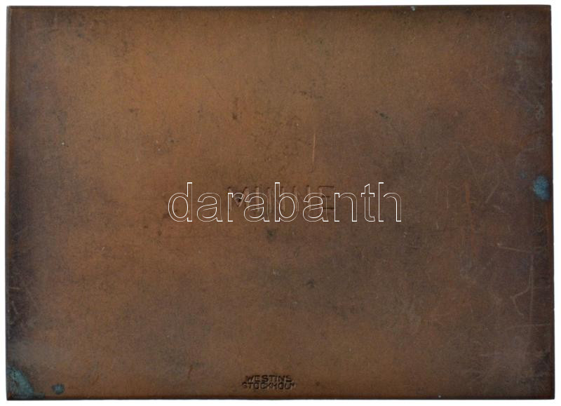 Svédország 1954. ‘Nemzetközi szabadverseny – Svédország-Magyarország – Stockholm 1954’ bronz atlétikai emlékplakett ‘ Westins Stockholm’ gyártói jelzéssel és ‘Minne’ gravírozással a hátoldalán. Szign.: AH(?) (84x61mm) T:1-,2 Sweden 1954. ‘International co