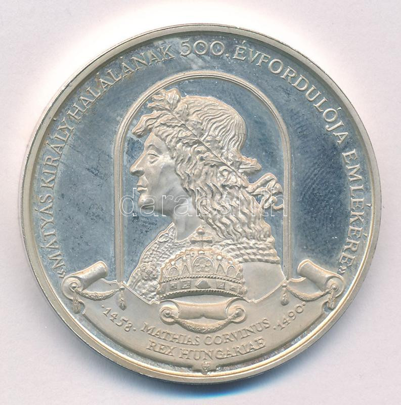 Szabó Géza (1939-) 1990. ‘Mátyás király halálának 500. évfordulója emlékére’ kétoldalas Ag emlékérem (35,75g/0,835/42mm) T:1- (PP) patina<a href="https://www.darabanth.com/hu/gyorsarveres/434/kategoriak~Numizmatika/Magyar-emlekveretek-plakettek~1500