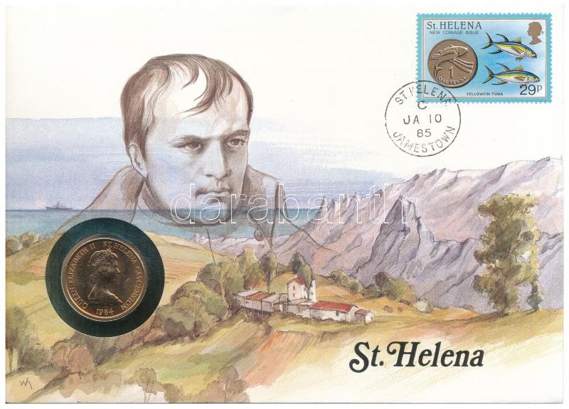 Szent Ilona 1984. 2p felbélyegzett borítékban, bélyegzéssel, német nyelvű leírással T:1 Saint Helena 1984. 2 Pence in envelope with stamp and cancellation, with German description C:UNC<a href="https://www.darabanth.com/hu/gyorsarveres/423/kategori