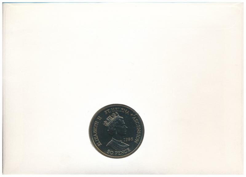 Szent Ilona 1986. 50p Cu-Ni ‘Napoleon halálának 165. évfordulója’ érmés, francia bélyeggel felbélyegzett borítékban, alkalmi bélyegzéssel, német nyelvű leírással T:1 St. Helena 1986. 50 Pence Cu-Ni ‘165th anniversary of Napoleon’s death’ in envelope with