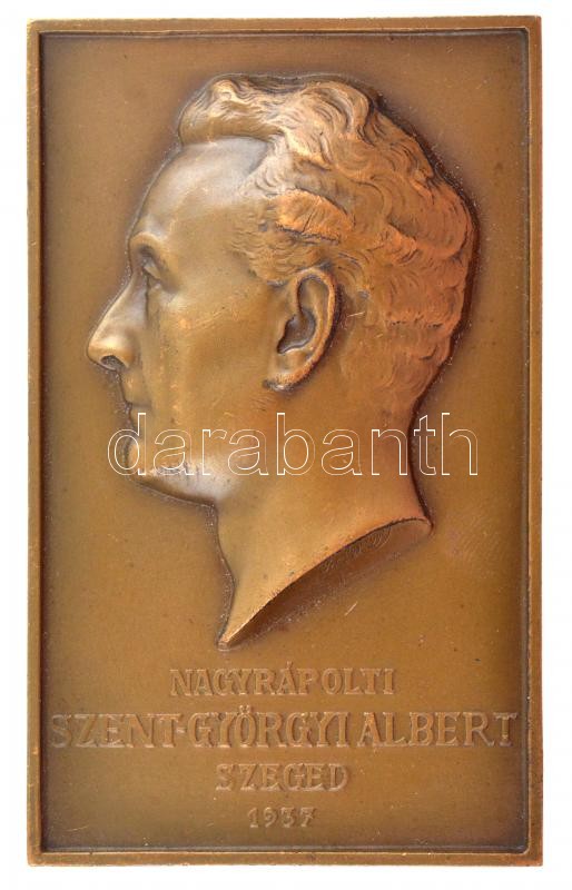 Szentgyörgyi István (1881-1938) 1937. ‘Nagyrápolti Szent-Györgyi Albert – Szeged’ egyoldalas Br plakett (81x50mm) T:1-,2 ph, az egyik sarkából kis letörés<a href="https://www.darabanth.com/hu/gyorsarveres/422/kategoriak~Numizmatika/Magyar-orvosi-eml